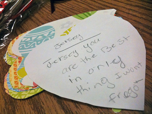 I spent my last hour in their classroom today, packaging up notes they had written to one another.